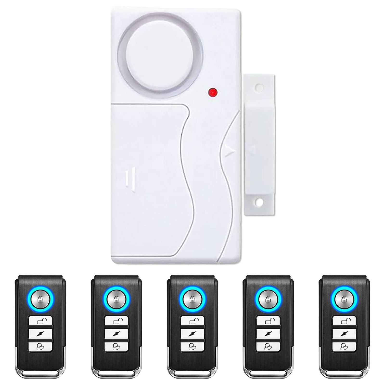 KIT 01 ALARMES + 05 CONTROLE REMOTO RESIDENCIAL COMERCIAL COM SENSOR MAGNÉTICO E CONTROLE REMOTO - REF. CH288